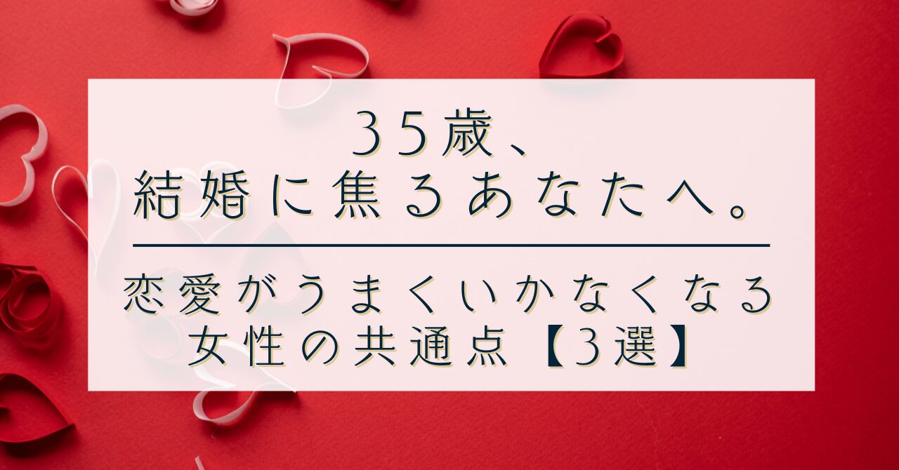 35歳で結婚に焦るほど、なぜか恋愛が空回りする…その理由は行動と考え方にあります。恋愛がうまくいかなくなる女性の共通点3選と、今すぐ抜け出すためのヒントを解説。